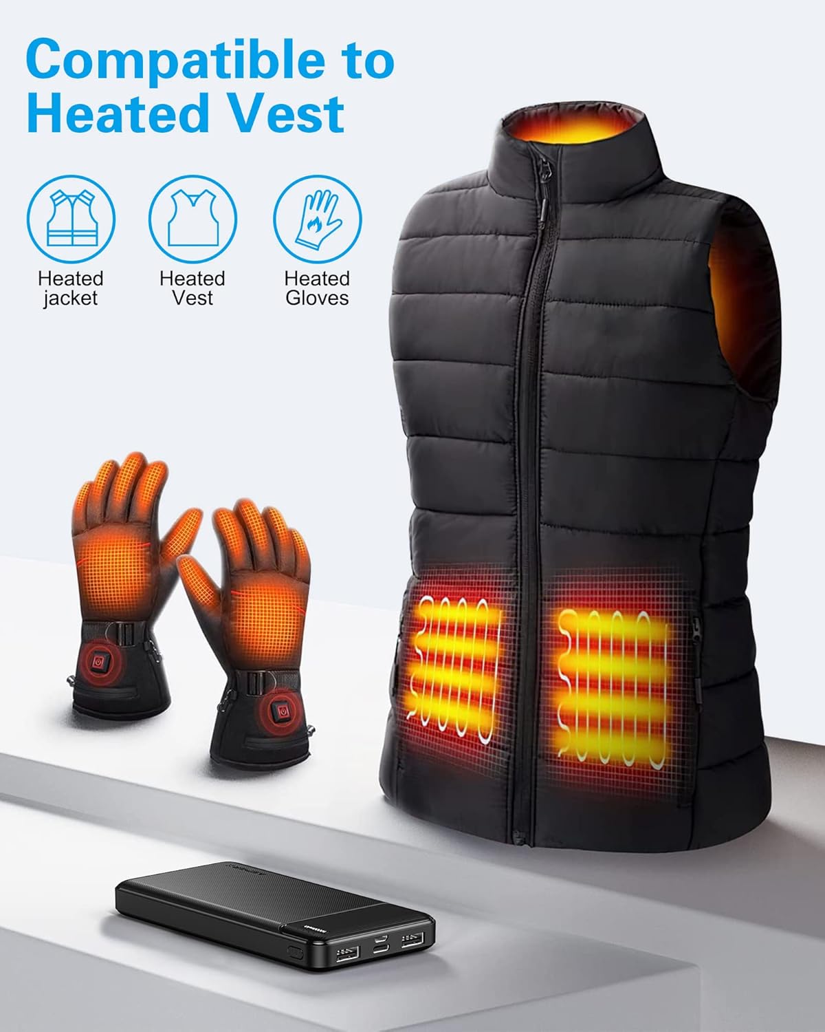 【Ultra-Thin】This portable battery pack is only 0.5 inches thick and weighs only 223 grams, which can be put into any backpack, purse, or work bag. Lightweight and compact, it is a must-have for business, travel, hiking, and camping