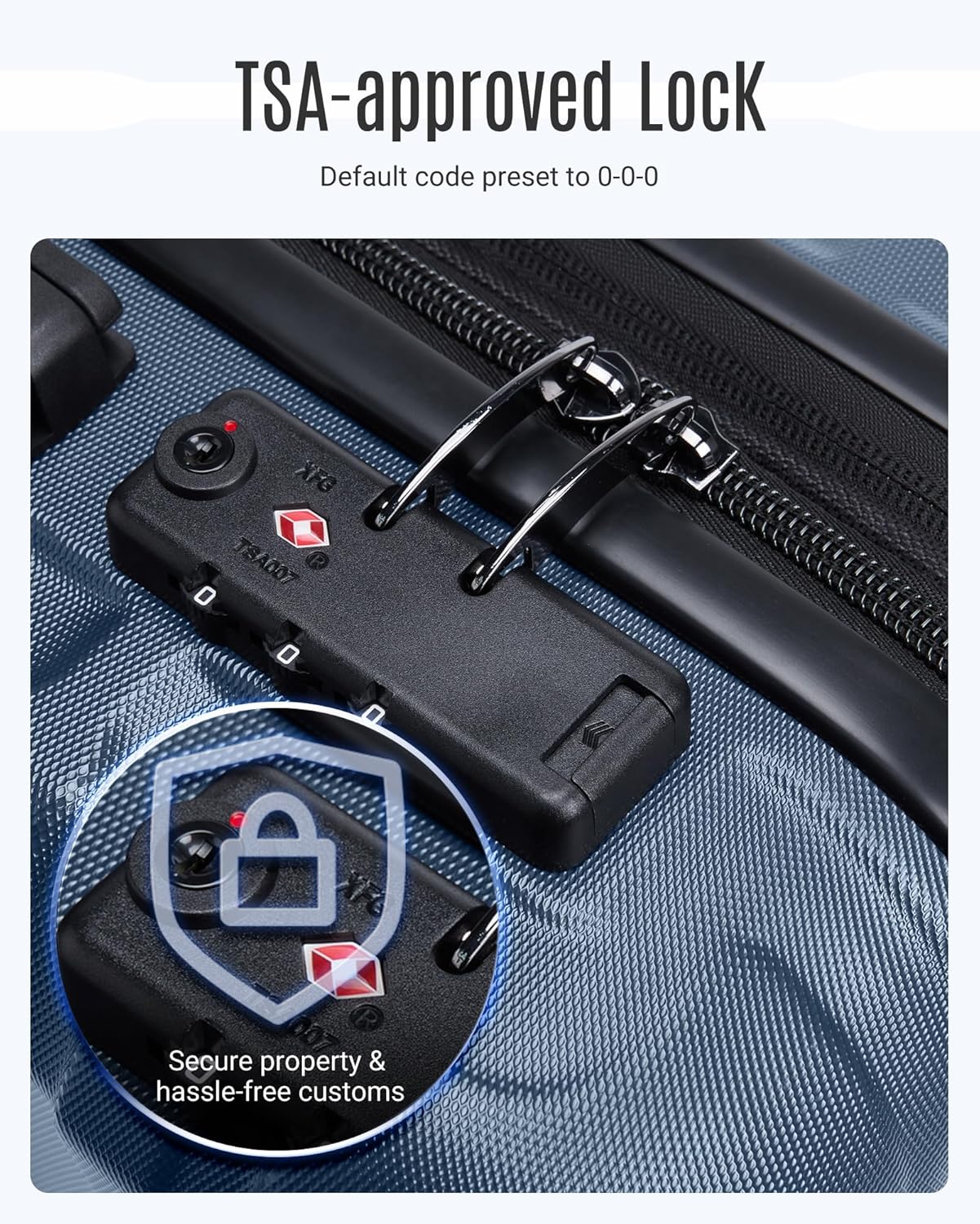 Enhanced Security: Travel with peace of mind with hardshell luggage sets featuring a TSA-approved combination lock, which has a default code preset to 0-0-0. High-quality zippers are designed to resist punctures and ensure secure closure, safeguarding belongings throughout travel. With these security features in the 3-piece luggage sets, focus can remain on enjoying the journey, knowing valuables are well-protected