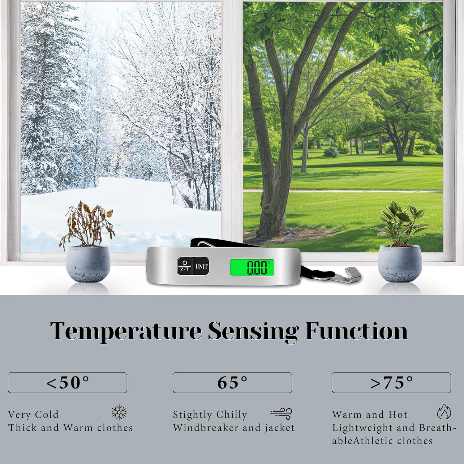 [MULTI FUNCTIONAL SWITCHING MODE] – Luggage scale can withstand a maximum weight of 110 pounds and can accurately measure up to 0.02 pounds/10 grams for you. The luggage weight scale also has four unit conversion functions for grams and pounds: lb/kg/F/C, meeting your different needs. When you use it, there is no need for complex operations, just press the switch button easily to switch to the unit you want, bringing you comprehensive convenience in any situation.